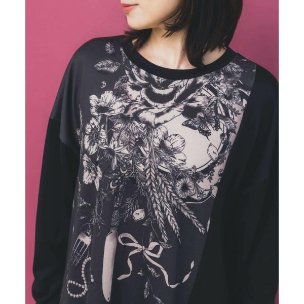 お花やカトラリーのロマンティックなプリントがアクセントになった、華やかな印象の切り替えワンピースです。