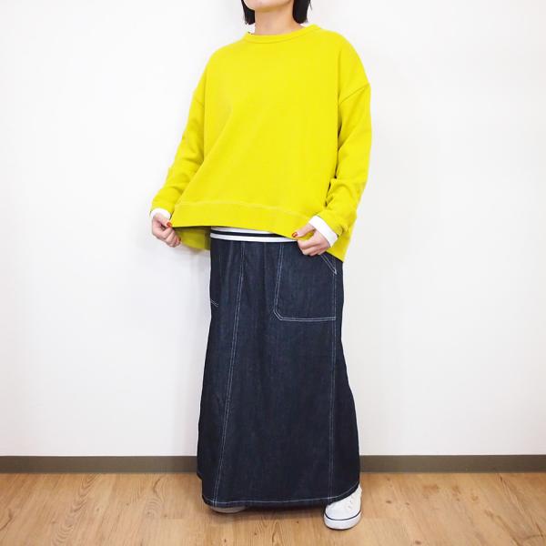 前はすっきり、後ろはヒップラインを自然にカバーする後ろ下がりの着丈で、体型を選ばずバランスよく着用可能。