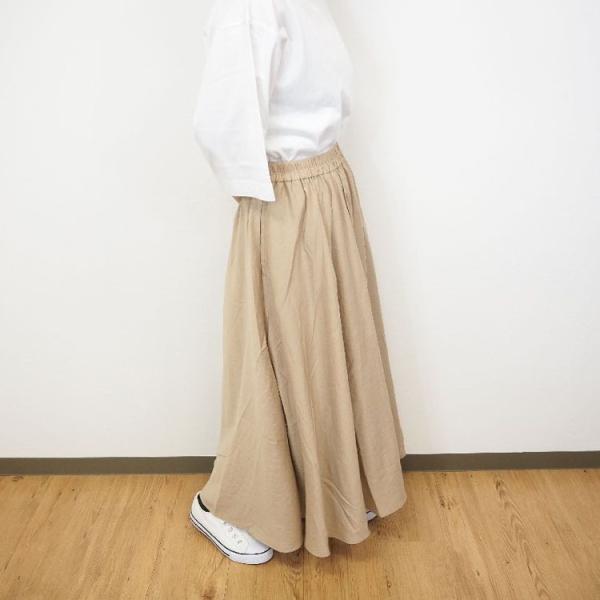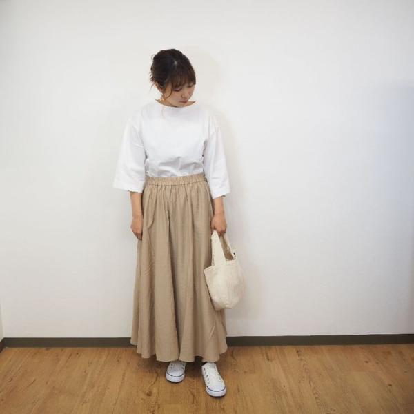 nanea / ナネア スラブ 朱子織 ギャザースカート ミモレ丈 レディースファッション 大人 カワイイ ナチュラル服