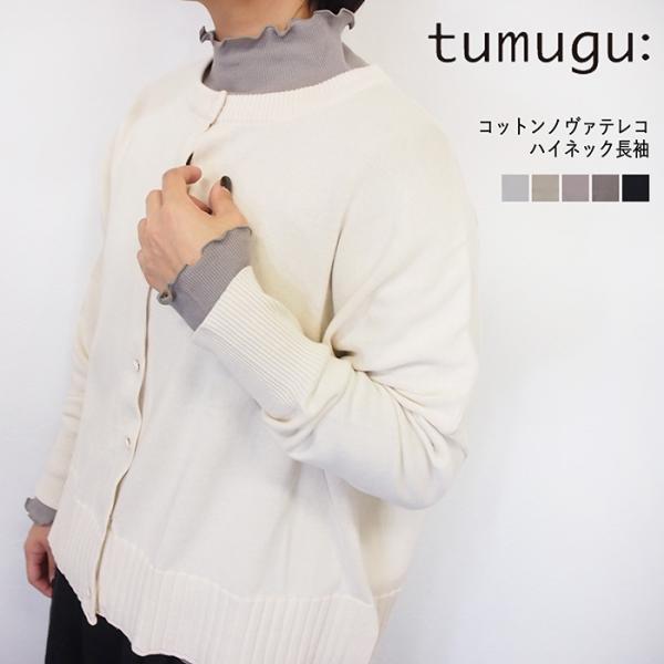 tumugu/ツムグ コットンノヴァテレコ フリル ハイネック レディース 2025 秋冬 長袖 Tシャツ カットソー 綿100% 大人カワイイ 40代 50代