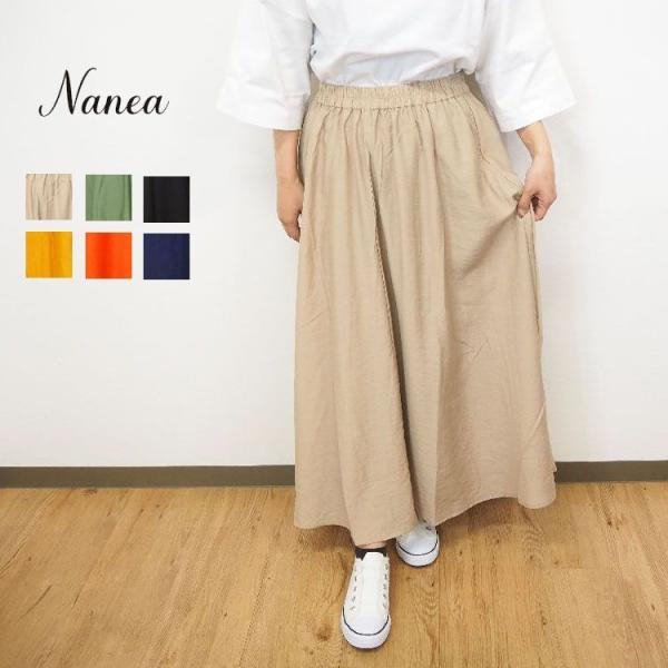 nanea / ナネア スラブ 朱子織 ギャザースカート ミモレ丈 レディースファッション 大人 カワイイ ナチュラル服