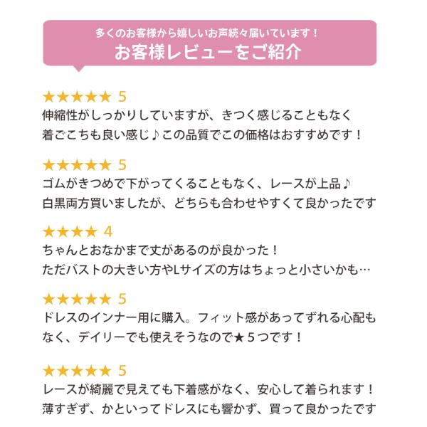 ドレスやワンピースのインナーとしてはもちろんですが、普段のインナーや透けトップスとの重ね着等、どんなシーンにも使いやすいアイテムです♪