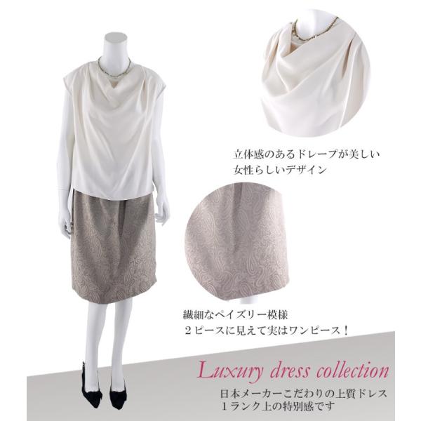 70%OFFパーティードレスのアウトレット パーティードレス お呼ばれ 二次会 結婚式 ペイズリー柄スカートの2ピース風ワンピース9号