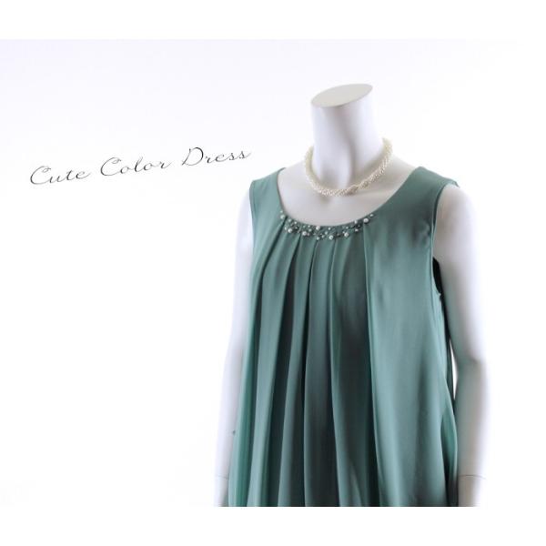 さわやかなミントグリーンカラーが目を引くドレスです。