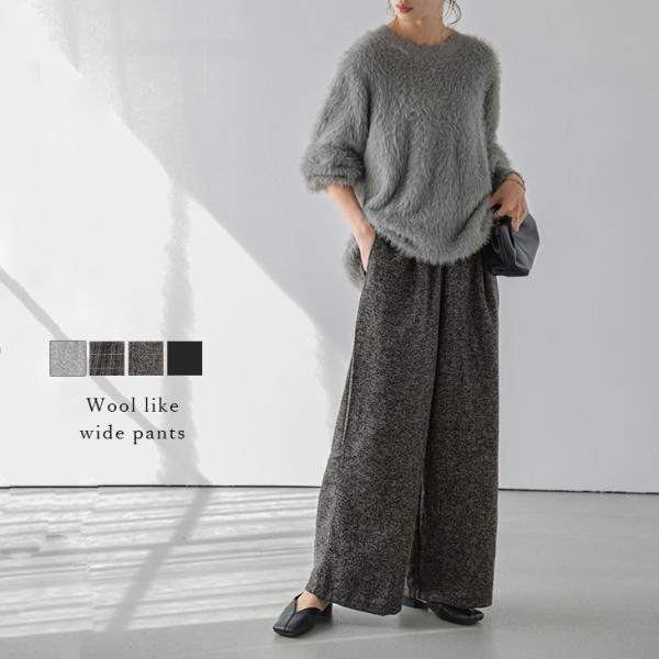 ウールライク ワイドパンツレディースきれいめウエストゴム 【lgww-at3663】【即納:1-5営業日】【送料無料】メ込4