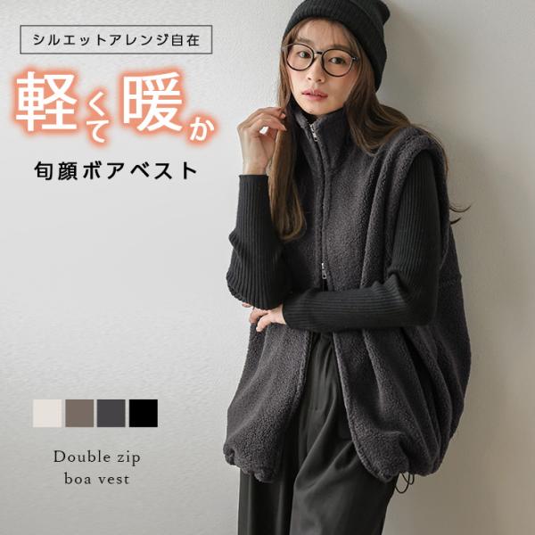 ボア ベスト ダブルジップ ドロスト スタンドネック アウター 防寒 2025秋冬新作【lsotaw25-1723】【即納:1営業日】【送料無料】宅込