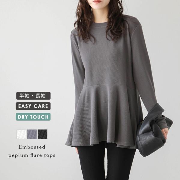 トップス ペプラム フレア 長袖 半袖 イージーケア 【lstpss24-280】【予約販売:3月12日入荷予定順次発送】【送料無料】ユ込2