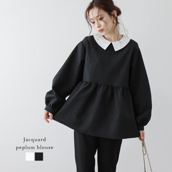 ペプラム トップス 長袖 襟付き ジャガード生地 ブラウス トップス【ltpss24-221】【to25】【予約販売:2月26日入荷予定順次発送】【送料無料】ユ込3