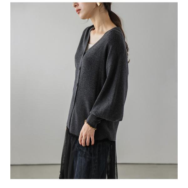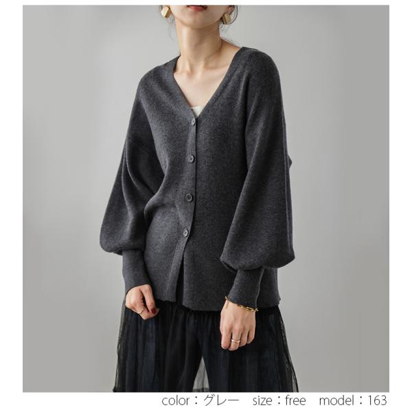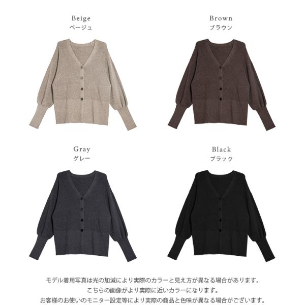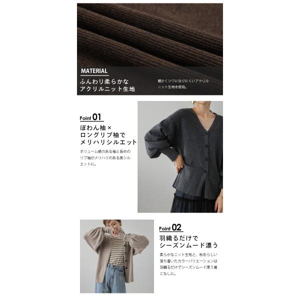 ニット カーディガン リブ ぽわん袖 ボリュームスリーブ
