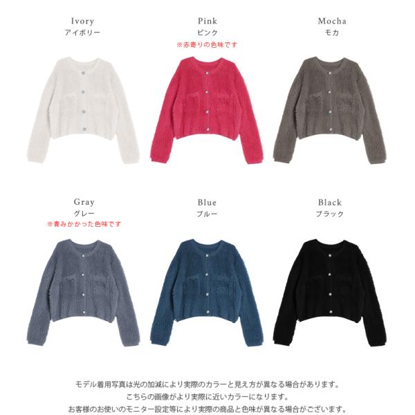 シャギーニットカーディガン ショート丈 パールボタン