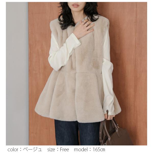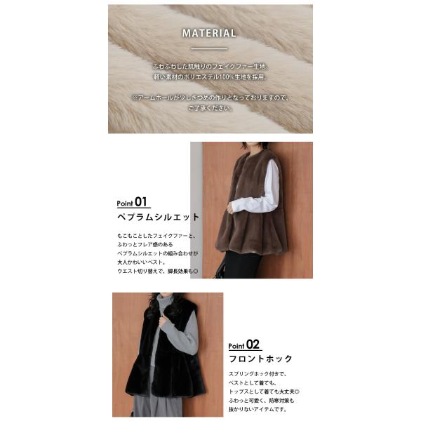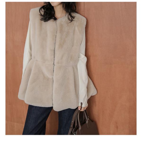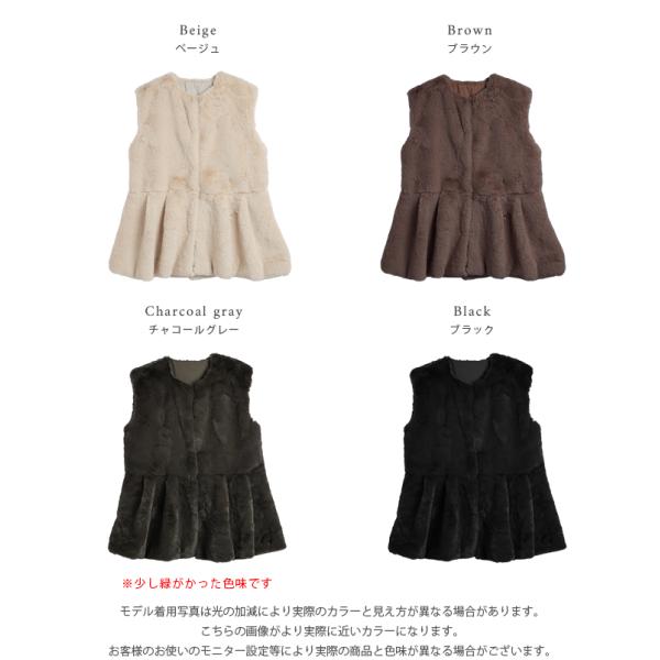 フェイクファーベスト ペプラム ふわふわ アウター 可愛い