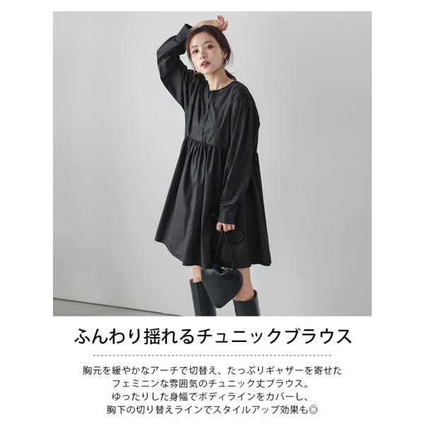 チュニックブラウス ラウンドネック 長袖 5分袖 フェミニン【lstp302-63f】【予約販売:2月26日入荷予定順次発送】【送料無料】ユ込3