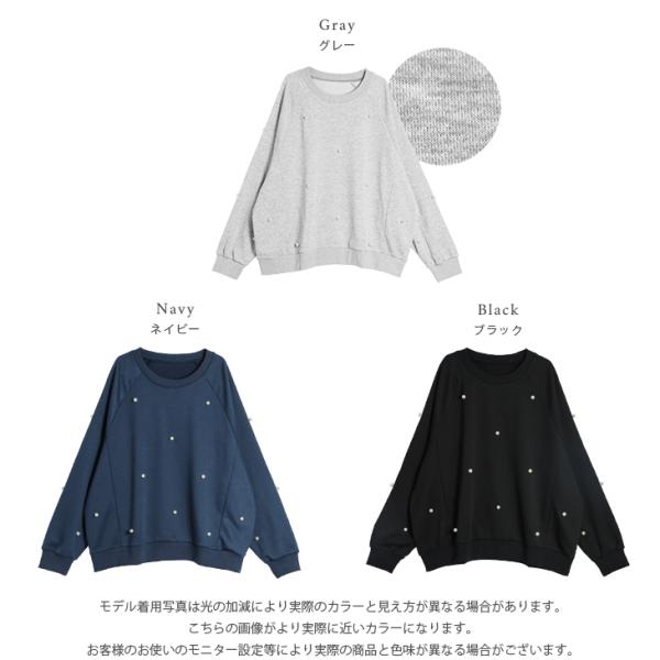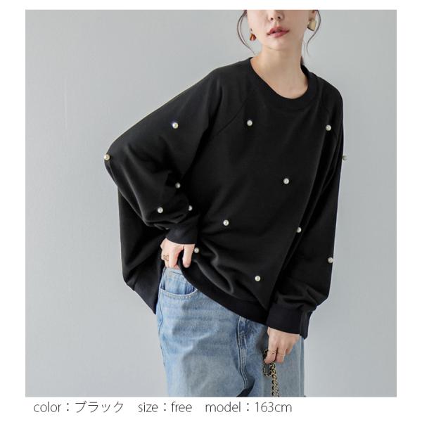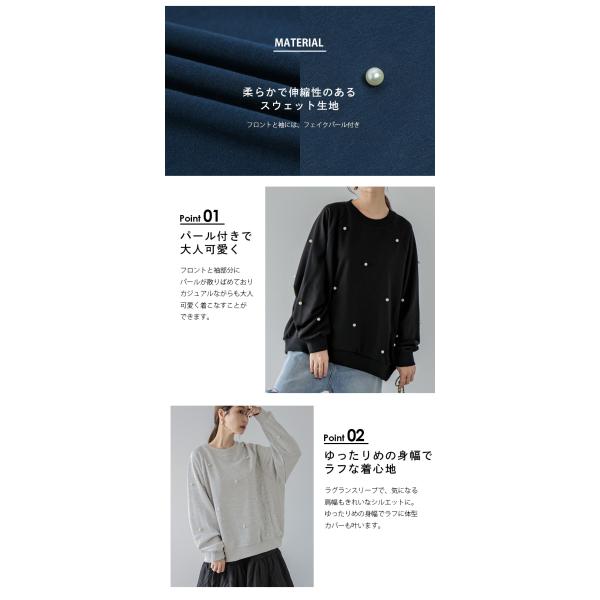 トップス スウェット パール付き プルオーバー ラグランスリーブ【lstp305-357】【即納:1-5営業日】【送料無料】メ込2