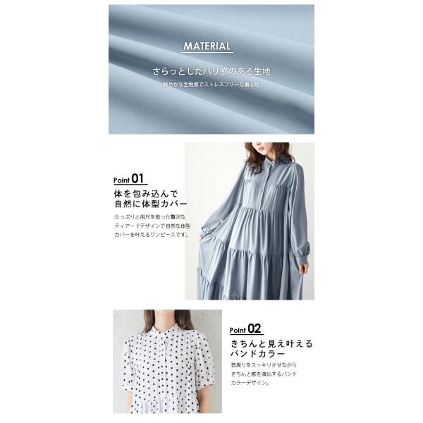 ティアードワンピース パフスリーブ 半袖 長袖 バンドカラー 揺れる 【lswp302-53a】【予約販売:2月26日入荷予定順次発送】【送料無料】メ込3