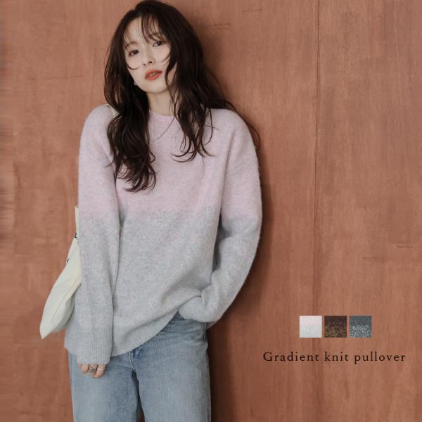 ニット グラデーション 配色デザイン ドロップショルダー【lstpaw25-1496】【即納:1-5営業日】【送料無料】宅込