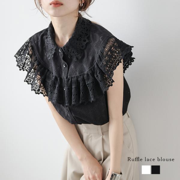 ラッフルレース ブラウス ノースリーブ レース襟 楊柳生地 レース 2025春夏新作【lstpss25-1418】【即納:1-5営業日】【送料無料】メ込2
