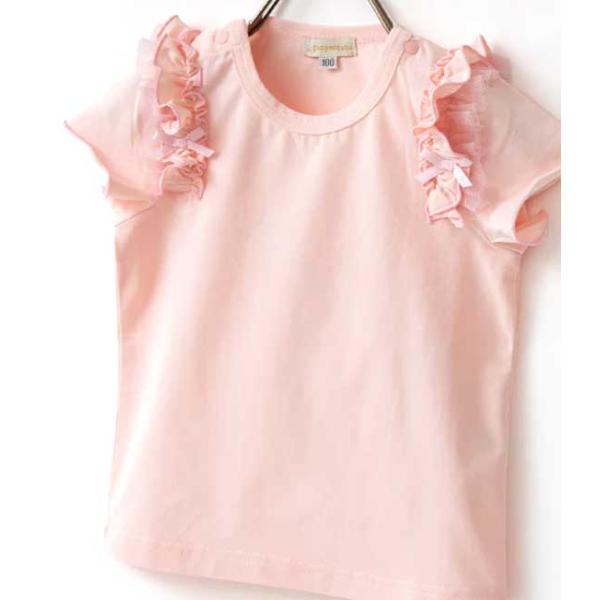 (80〜100cm) panpantutu(パンパンチュチュ) フリルショルダートップ(半袖)/ベビーピンク