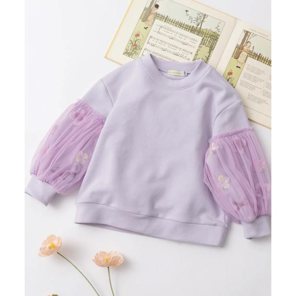 (100〜140cm) panpantutu(パンパンチュチュ) お花とリボンのバルーンスリーブスウェット/ラベンダー