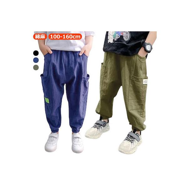 送料無料 パンツ カジュアルパンツ 春夏 男の子 ゆったり 子供服 サルエルパンツ 中学生 ロングパンツ ジュニア 綿麻 通学 ウエストゴム カジュア
