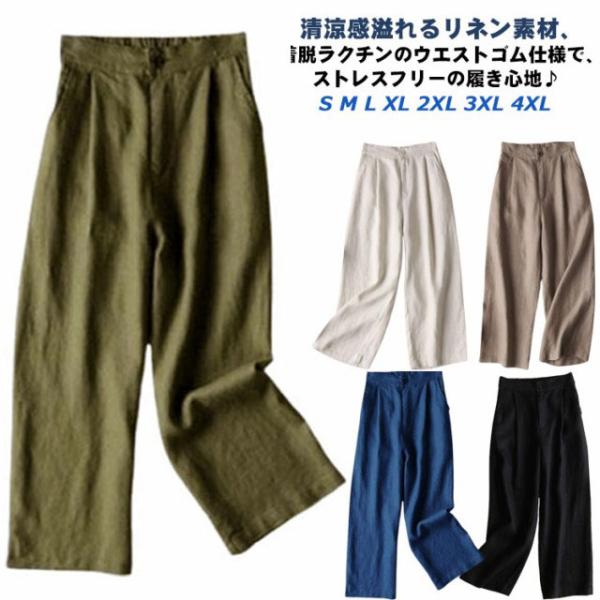 コットンリネン 涼しい パンツ 夏 イージーパンツ レディース 綿麻 薄手 9分丈 綿 通気性 大きいサイズ ボトムス 春 夏 ゆったり ワイドパンツ