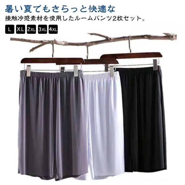 ストレッチ ルームパンツ 2枚セット ハーフパンツ 5分丈 ステテコ メンズ ゆったり 接触冷感 伸縮性 パジャマ スポーツ 薄手 ウエストゴム ルー