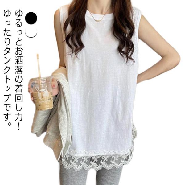秋 裾レース ノースリーブ 夏 ロング丈 レディース 重ね着 インナー 裾レース 大きいサイズ トップス 春 レイヤードタンクトップ ロングタンクトッ