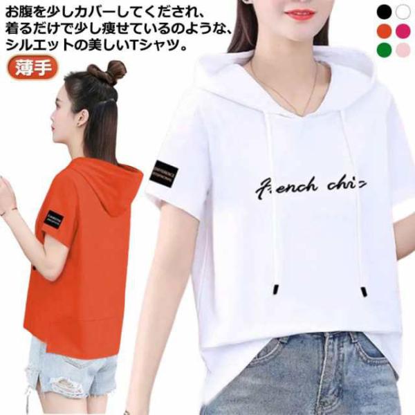 パーカー 薄手 夏 夏 半袖 tシャツ フード付きtシャツ フード付き レディース プリント ロゴ プルオーバー プルオーバーパーカー トップス パー