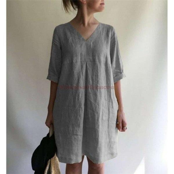 ワンピース レディース 夏 綿麻風 チュニックワンピース