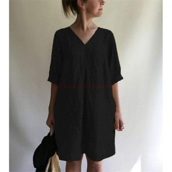 ワンピース レディース 夏 綿麻風 チュニックワンピース 半袖 チュニック Aライン ゆったり 体型カバー ママ カジュアル ゆるっと 春ワンピース