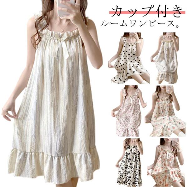 ネグリジェ 袖なし パジャマ 夏 カップ付き 可愛い レディース 女性用 パッド付き ワンピース キャミソールワンピース 春 夏 秋 膝丈 かわいい