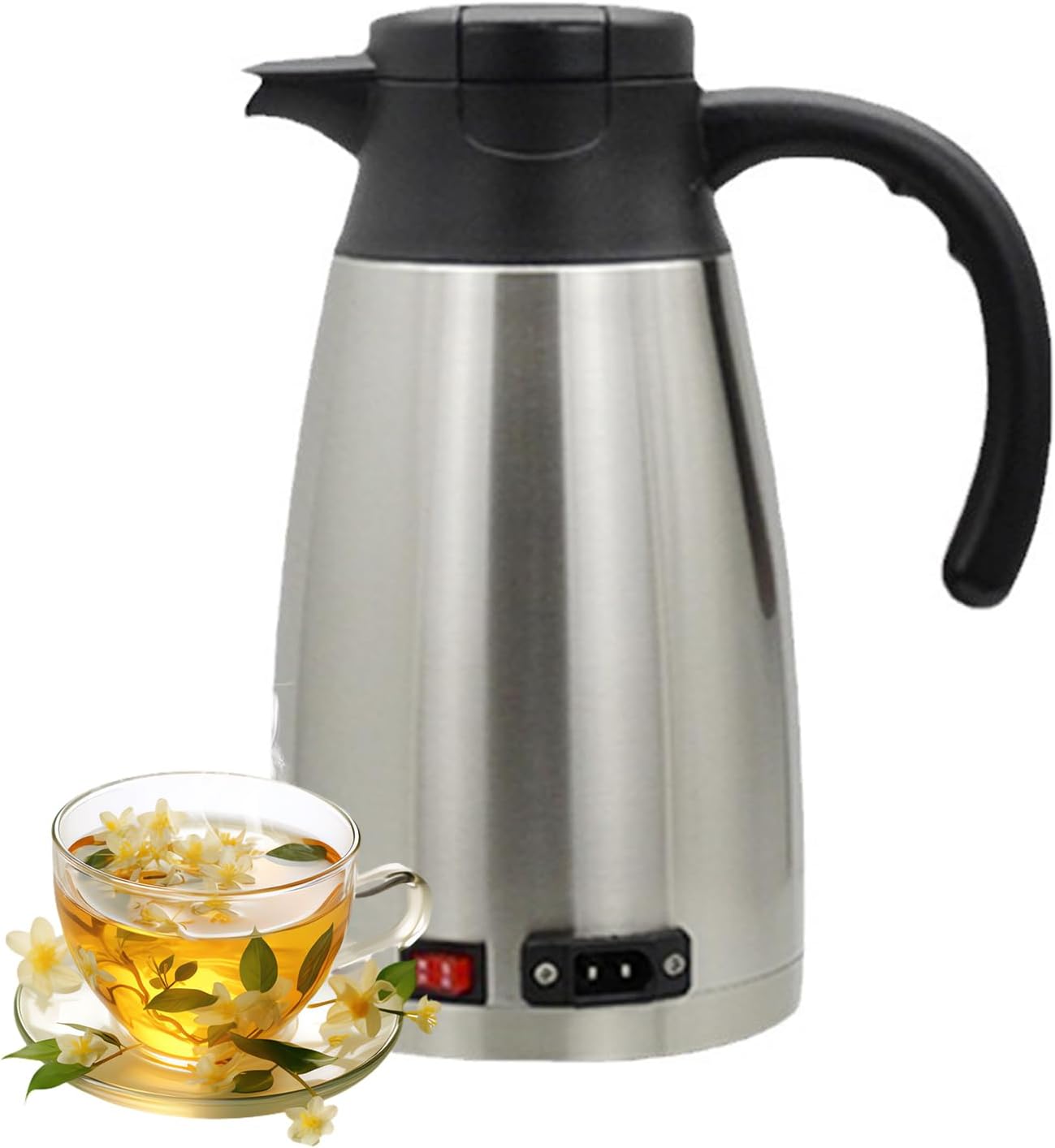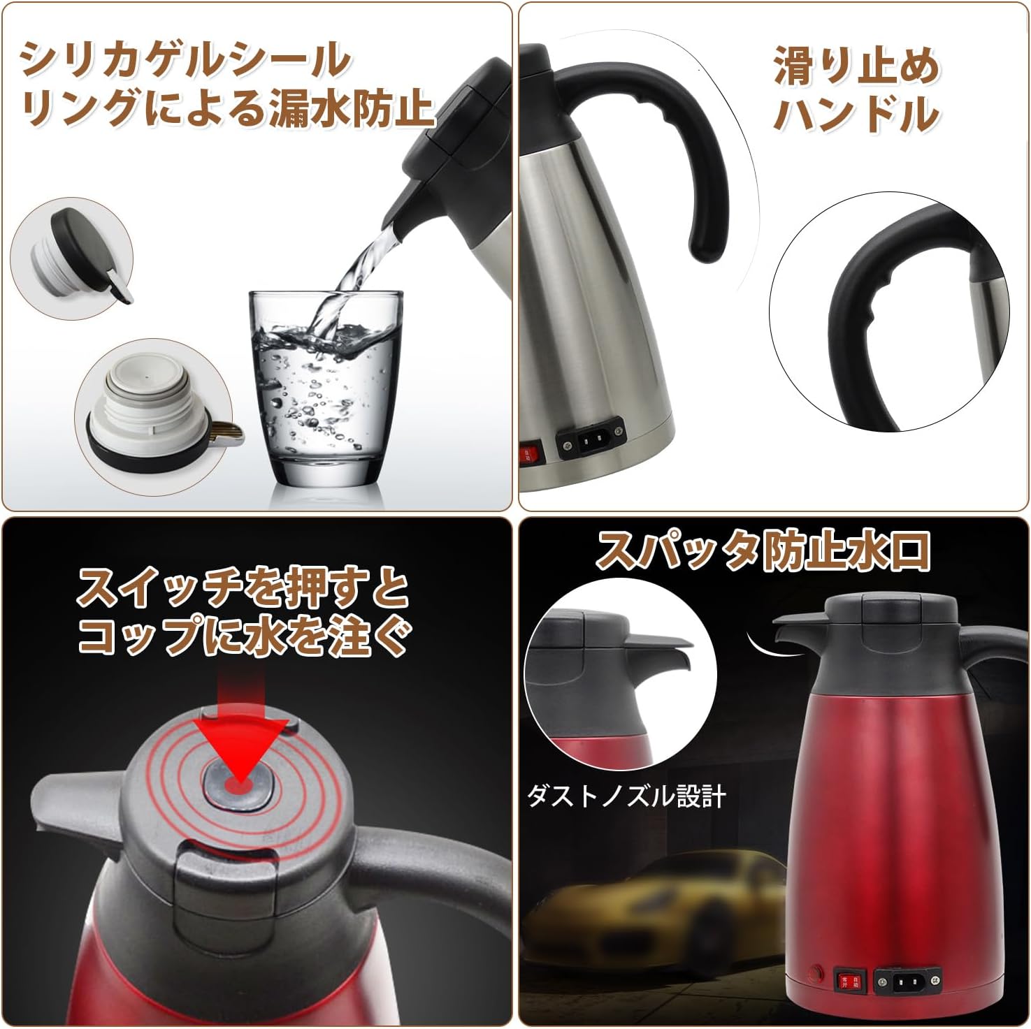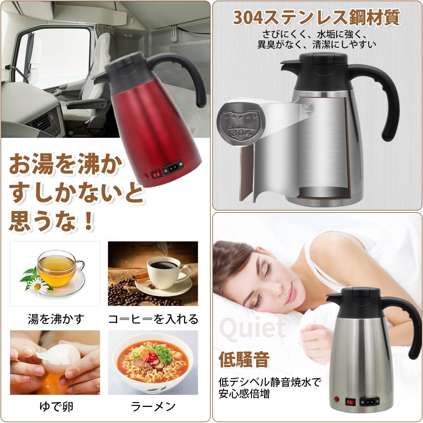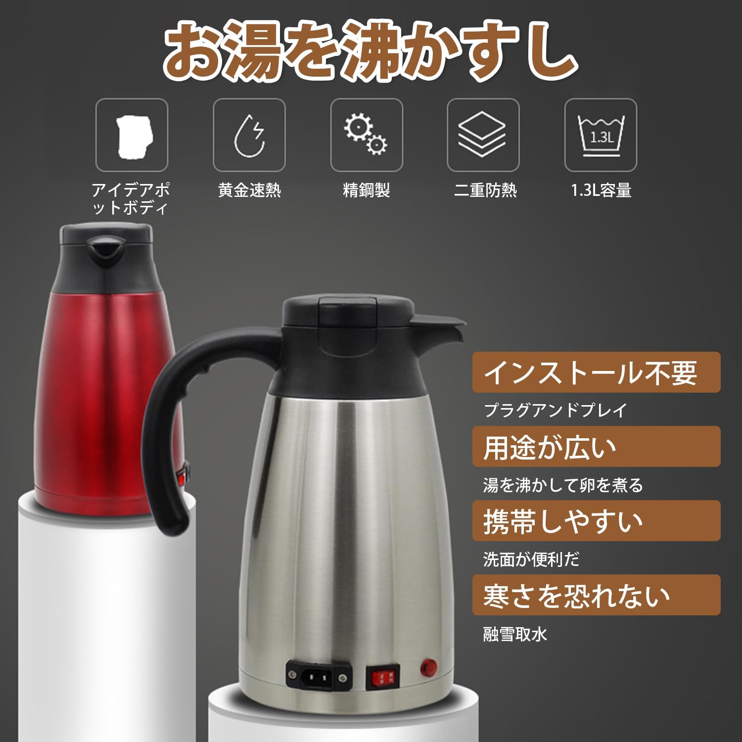 車用電気ポット DC12V-24V兼用 循環加熱 車載 電気ケトル カーポット 大容量1300ml 車用湯沸かし器 カーヒーター 食品グレード304ステンレス 旅行/キャンプ