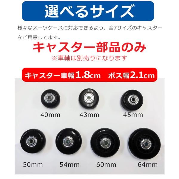 ご購入の前にお手持ちのスーツケースのキャスターサイズをご確認ください。