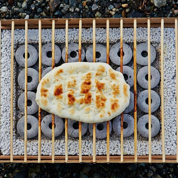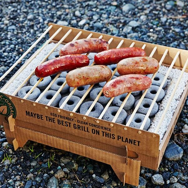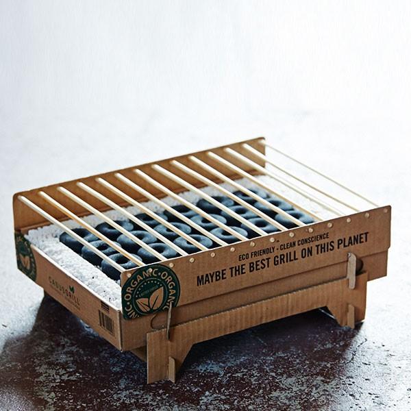 竹炭、火山石、竹、FSC認定段ボールのすべてが天然素材のインスタントグリル