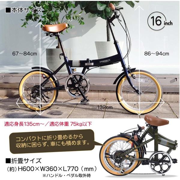 マイパラス 折りたたみ自転車 16インチ MF103 ミリタリーグリーン コンパクト おしゃれ 小さい 小さめ 6段変速ギア【本州のみ送料無料】