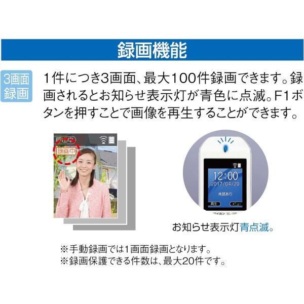 来訪者の画像を1件あたり3画面、最大100件まで自動で録画します。