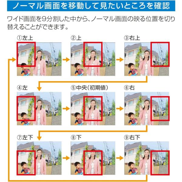左右画角約110°のワイド画面で隅の方までしっかりと確認できます。