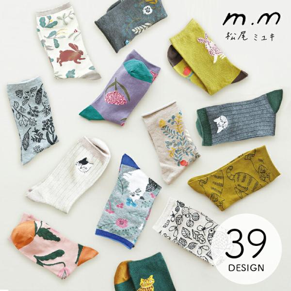 松尾ミユキ ソックス 靴下 レディース 綿 コットン 北欧 おしゃれ かわいい 可愛い クルー丈 クルーソックス 花柄 シンプル カラフル