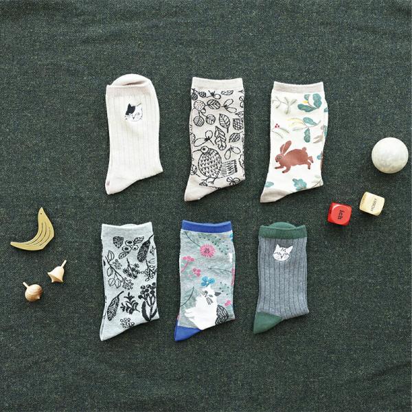 松尾ミユキ ソックス 靴下 レディース 綿 コットン 北欧 おしゃれ かわいい 可愛い クルー丈 クルーソックス 花柄 シンプル カラフル