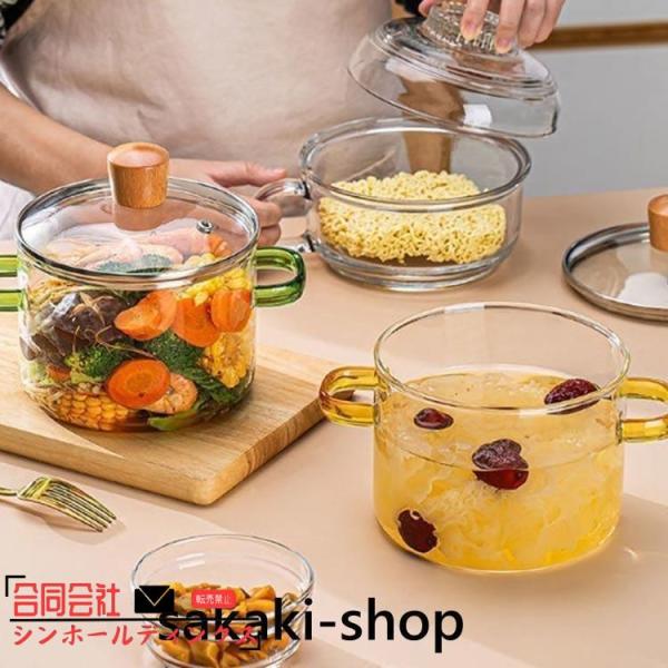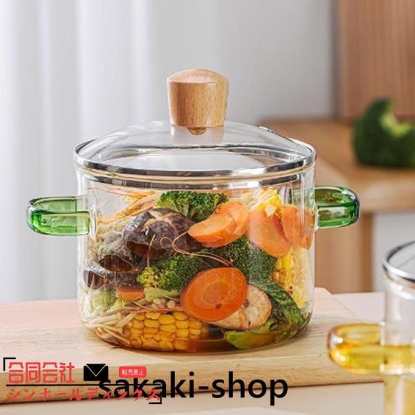 耐熱 ガラス 鍋 直 火 ih で 使える ガラス 鍋 電気陶炉 対応 ガラス鍋透明ガラススープ鍋 家庭料理 木製フタ付き 取っ付き 対応 電子レン