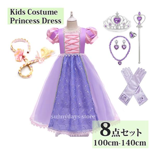 ラプンツェル ドレス プリンセス ドレス ハロウィン コスプレ 衣装 ハロウィン 仮装 子供 ディズニー 風 プリンセスドレス 誕生日 クリスマス イベント 豪華8点