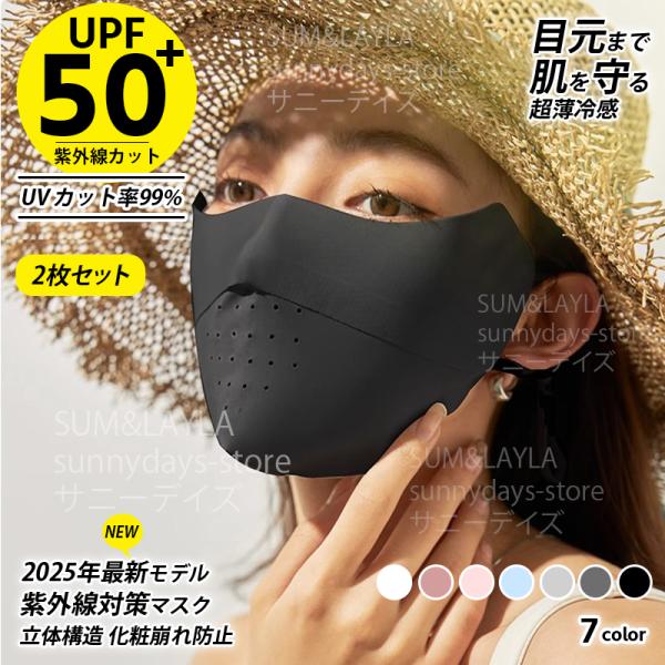 uvマスク 洗える 黒 冷感 日よけマスク 日除けマスク 日よけ マスク 呼吸口 冷感 UVカット UVマスク フェイスカバー レディース メンズ 2枚セット 小顔 マスク
