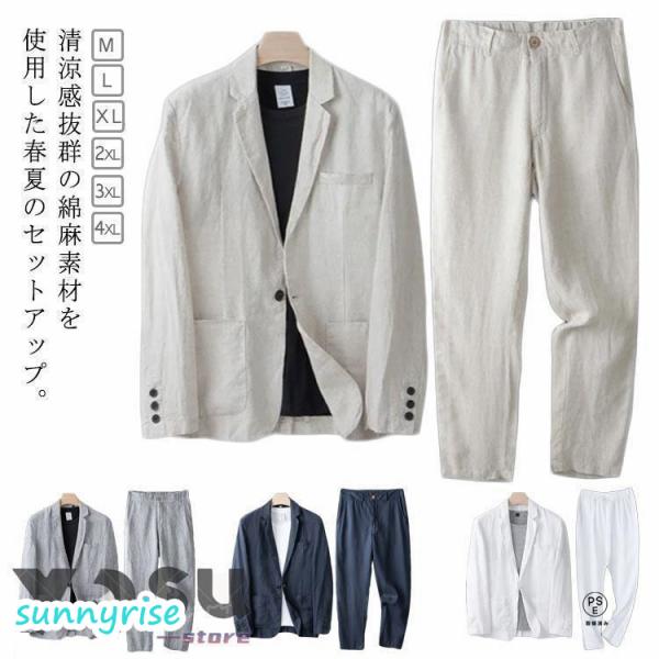 夏用 セットアップ セットアップ メンズ サマージャケット 上下セット 綿麻 麻 テーラードジャケット 春 カジュアルスーツ メンズファッション