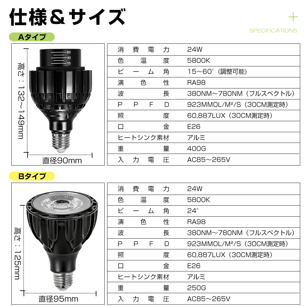 植物育成ライト LED フルスペクトル e26 24W 5800K