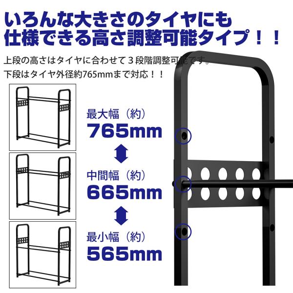 タイヤラック 8本 横置き タイヤラックカバー付き キャスター付き 軽自動車 2段式 耐荷重300kg