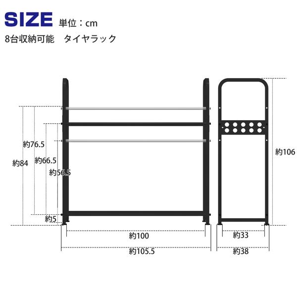 タイヤラック 8本 横置き カバー キャスター 付き 軽自動車