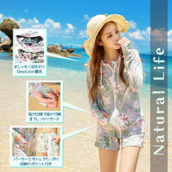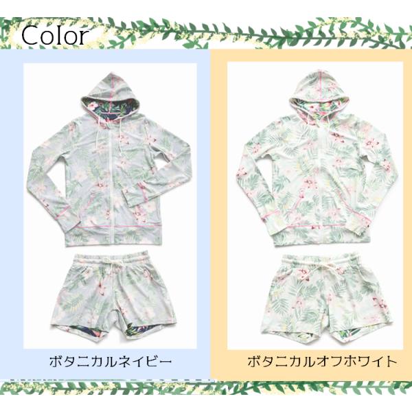 ラッシュガード 2点セット レディース 上下セット ボタニカル UPF50+ 体型カバー UVカット 紫外線対策 日焼け パーカー 花柄 長袖 かわいい おしゃれ