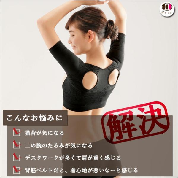 猫背 補正 サポーター 姿勢 矯正 インナー ねこぜ 巻き肩 肩こり 痛み 歪み 予防 対策 便利 グッズ 二の腕 たるみ 背筋 背骨 肩甲骨 支える 日本製 肩楽さん