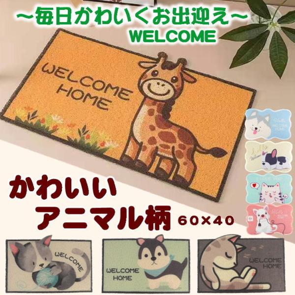 玄関 マット 屋外 泥落とし 室内 かわいい おしゃれ 洗える アニマル玄関マット レギュラー 大判 ズレない 猫 犬 キリン アニマル 柄 外用 泥除け ドア