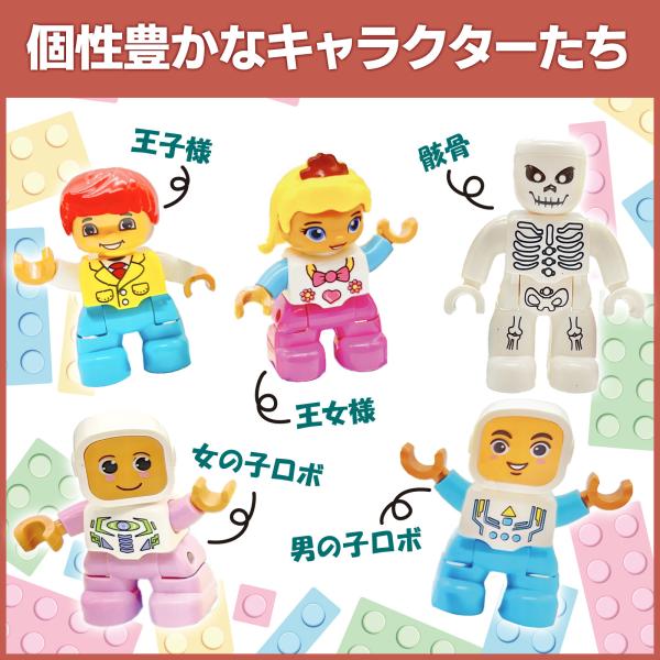 【知育にも】ブロックで遊ぶときミニフィグがあると、そこに「モノガタリ」が生まれます。お子様の想像力を高め、知育に大変おすすめです。