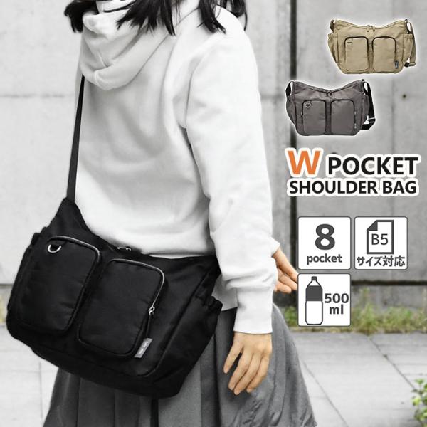 ツイル Wポケット ショルダーバッグ レディース ミニショルダーバッグ ポケット 多い ペットボトル サイドポケット マザーズバッグ おしゃれ 大人 軽い 軽量
